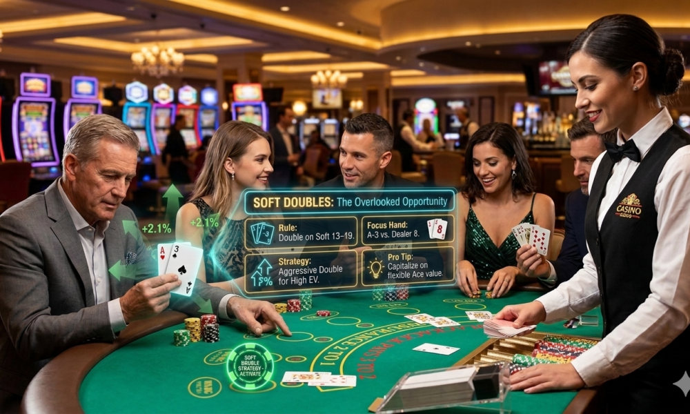 Soft hands — any hand containing an Ace counted as 11 — are where many casual players miss significant value. Because the Ace can shift between 1 and 11, soft hands carry a built-in safety net that makes doubling far less risky than it looks.