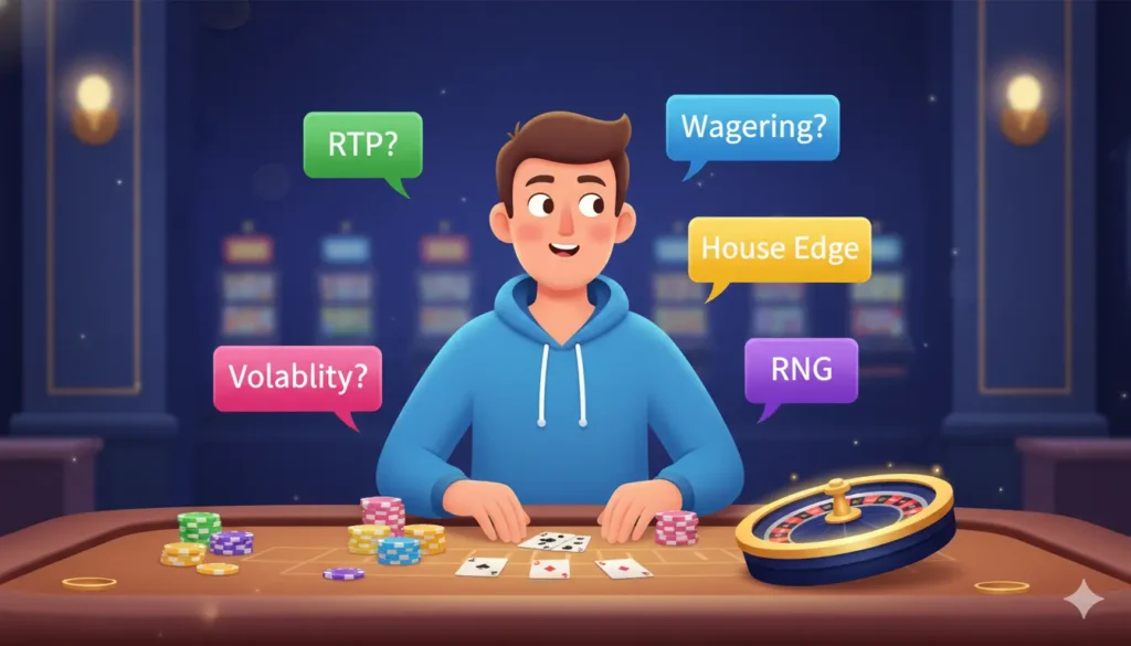 Walking into an online casino for the first time feels like entering a room where everyone else knows a secret language. Wagering requirements, RTP, house edge, volatility, RNG — what does it all mean? This guide explains every essential casino term in plain English, so you can play smarter from your very first bet.