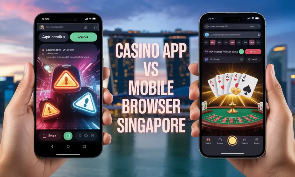 ideogram v3.0 Split screen comparison of casino app vs mobile browser for a Singapore user. Le 0 1